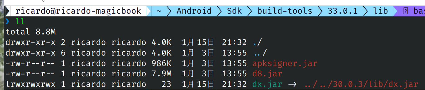 如果在编译的过程中提示缺失dx.jar这个文件而且你用的SDK版本还是高于31的,那可能是SDK中缺失了这个文件,可以将SDk降级到30就含有这个文件了。我使用的解决办法比较离奇,我是将30版本的SDK文件中的这个文件软链接过来,解决了这个问题。